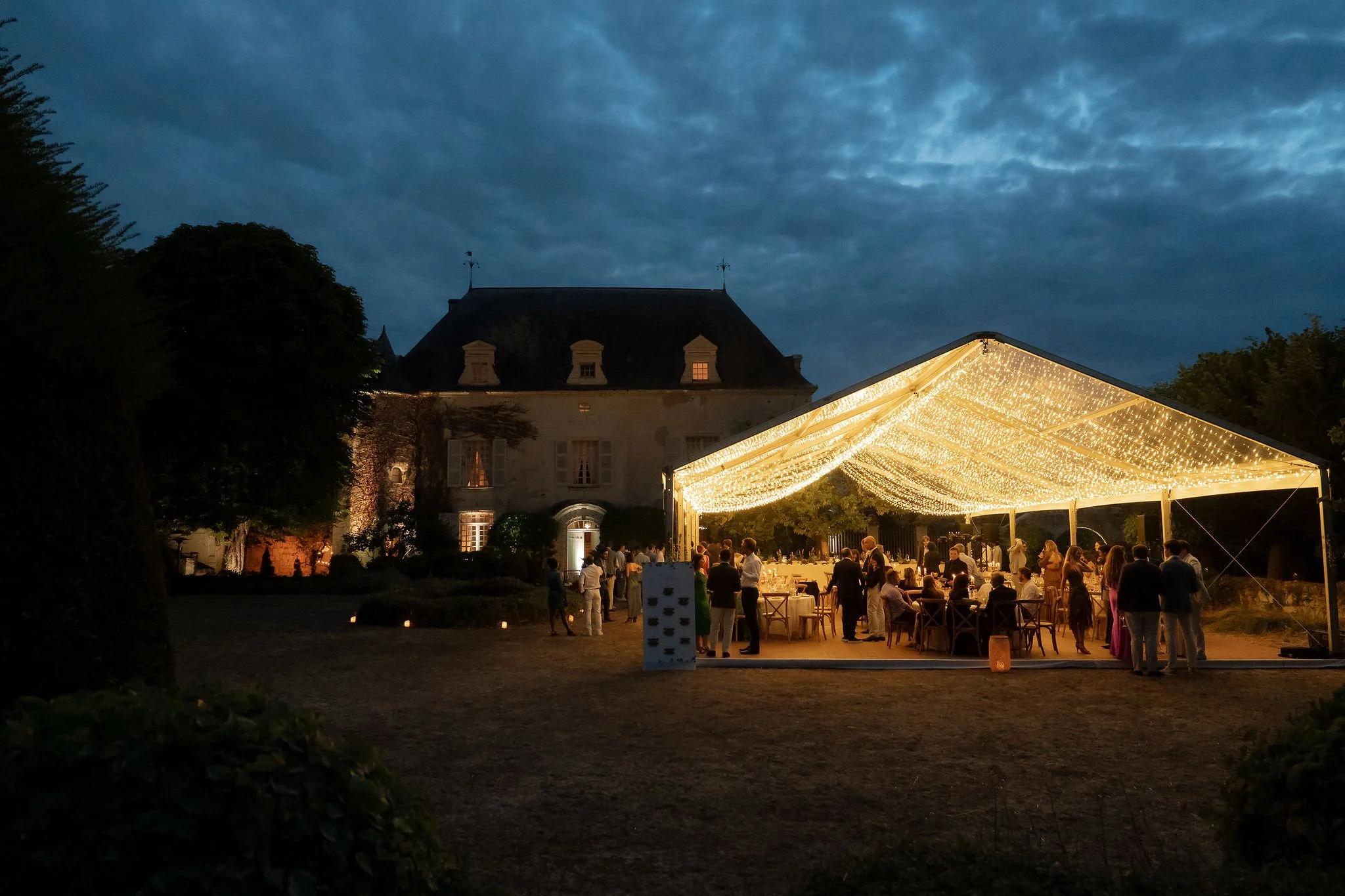 De l’installation d’une tente de 200m² à la scénographie complète des espaces — château, jardin et tente — chaque détail a été pensé pour sublimer le lieu et offrir une atmosphère élégante et conviviale.